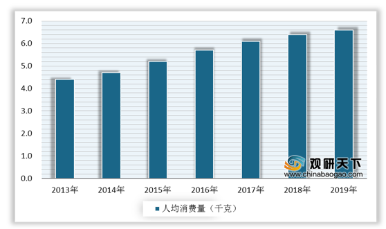 随着我国人口规模不断扩大和大众卫生意识增强,纸巾在国内的普及率越来越高,每年人均消费量持续增长。根据数据显示,2018年我国纸巾每年人均消费量为6.4千克,2019年我国纸巾每年人均消费量达到**千克。