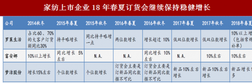 家纺上市企业18年春夏订货会继续保持稳健增长