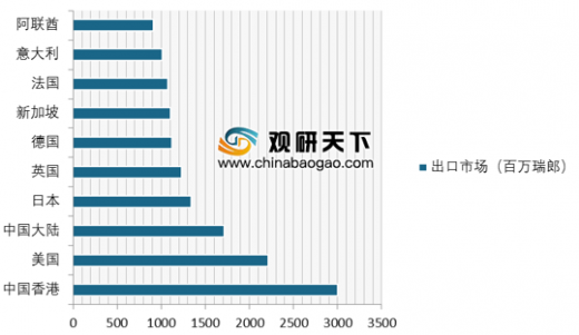 目前,中国的高端腕表市场涉及品牌众多,整体上是国际知名腕表的天下,尤其是瑞士钟表。瑞士钟表一直是全球制表业的最高标准之一,也是中国市场上毫无争议的高端腕表霸主。2018年,瑞士腕表产值达199亿法郎,其中向香港和大陆两地出口的腕表类产品总额超过47亿法郎,合人民币近290亿元。