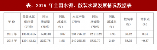 表:2016 年全国水泥、散装水泥发展情况数据表