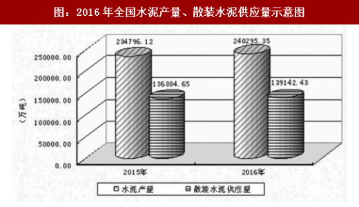 图:2016年全国水泥产量、散装水泥供应量示意图