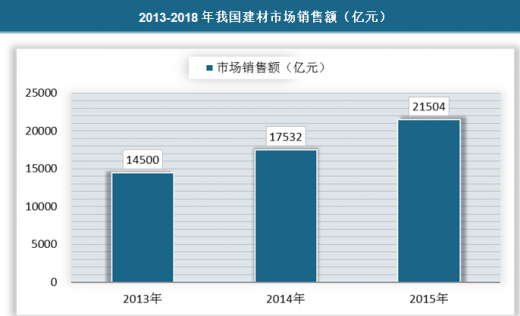 近几年来 建材家居行业发展状况受到了众多人们的关注,并且随着2013年国内建材市场销售额总值14500亿元。逐渐增长到2014年17532亿元,有着很明显的增长销售业绩,然而随着国内建材行业的飞速发展,2015年总体建材市场销售额达到21504亿元,有着巨大的发展创业空间。