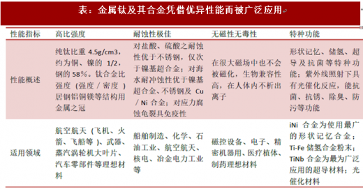 表:金属钛及其合金凭借优异性能而被广泛应用
