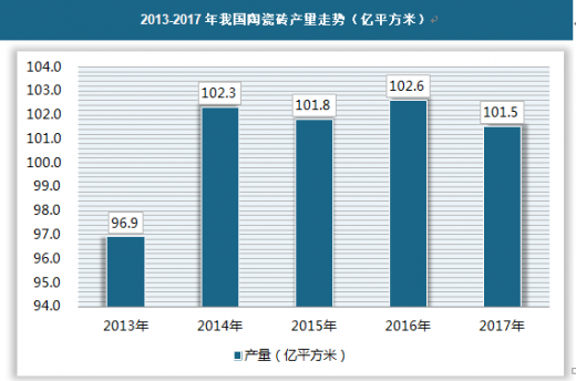 2013-2017年我国陶瓷砖产量走势(亿平方米)