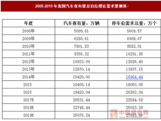 图:2008-2019年我国汽车保有量及泊位理论需求量测算