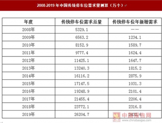 图:2008-2019年中国传统停车位需求量测算(万个)