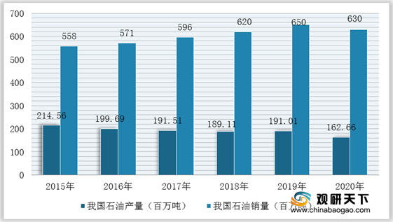 根据资料显示,2019年我国原油生产增速由负转正,产量1.91亿吨,增长1%,扭转了2016年以来产量连续下滑的态势。石油消费方面,2015-2019年中国石油消费量整体趋于上升。2019年我国石油消费量达到6.5亿吨。