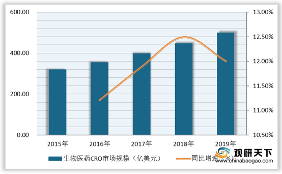 随着CRO行业渗透率和医药研发投入金额的不断提高,全球生物医药CRO迅速发展,市场前景向好,2019年全球生物医药CRO市场规模为**亿美元,同比增长*%。