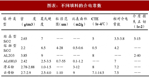 基板材料制造中的填充材料,是指基板材料组成中除增强纤维材料外,作为树脂填料的化工材料。填充材料在整个基板材料用树脂中所占的比例、品种、表面处理技术等,都对基板材料的介电常数有所影响。无机填料中较常使用的有:滑石粉、高岭土、氢氧化镁、氢氧化铝、硅微粉与氧化铝等。填料的加入,可以有效降低产品的吸湿性,从而改善板材的耐热性,同时,还可以降低板材热膨胀系数。