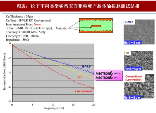 铜箔的趋肤深度随着信号传输inland的增加而减少,在高频下,铜导体的趋肤深度不足1um,这说明大多数电路将在铜箔表面的齿状结构中流过,由于粗糙表面影响电流通过,会影响到功率损耗与插入损耗。