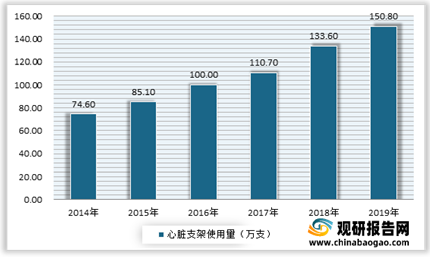 2014-2019年中国心脏支架使用量