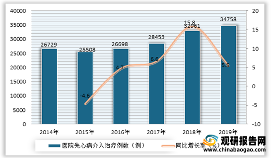 2014-2019年中国医院先心病介入治疗例数及增速