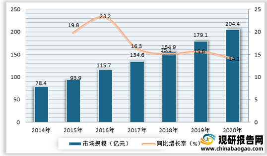 受益于我国主动脉及外周血管疾病患者人数将呈现不断增长的趋势,心脏支架市场也在不断扩展。数据显示,2020年中国心脏支架市场规模约为204.4亿元,同比增长14.1%。