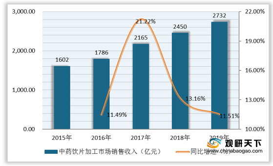 2015-2019年我国中药饮片加工市场销售收入及增速