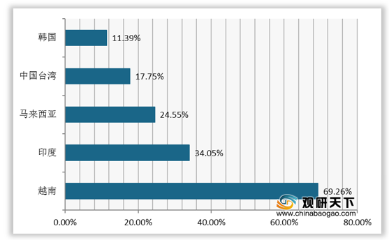 在2019年我国中药类商品出口市场增幅TOP5排行榜中,越南增幅最为明显,为69.26%;其次是印度,增幅为34.05%。