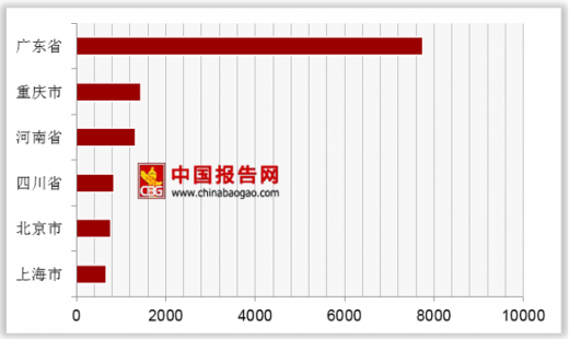 根据国家统计局数据显示,2018年10月我国移动通信手持机产量中,排名前六的地区分别是广东省、重庆市、河南省、四川省、北京市、上海市,产量分别是7752.3万台、1443.52万台、1316.43万台、840.86万台、772.59万台、662.05万台。