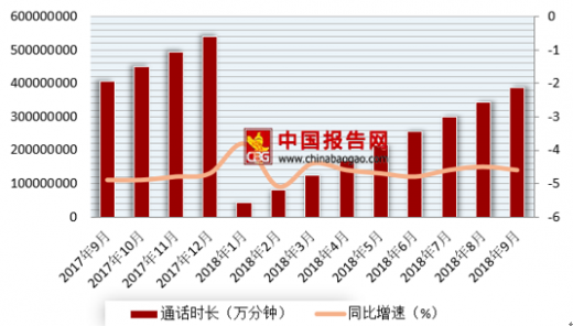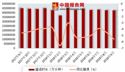 根据国家统计局数据显示,2018年1-9月我国移动电话通话时长387106567.7万分钟,累计同比下降4.6%,较1-8月下降了0.1个百分点。9月我国移动电话通话时长42851702.3万分钟,比去年同期下降5.6%。