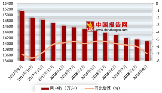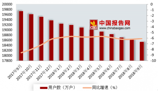 根据国家统计局数据显示,2018年9月我国固定电话年末用户数18534.3万户,比去年同期下降6.1%,较1-8月上升了0.1个百分点。9月我国城市电话年末用户数14094.1万户,比去年同期下降7%。
