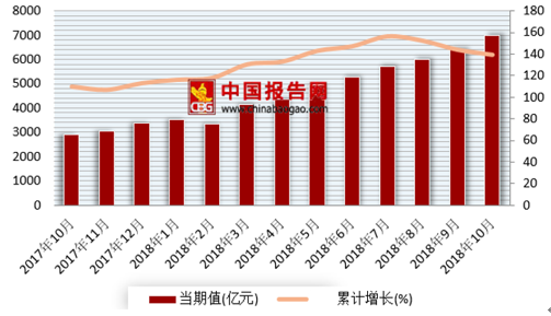 根据中国统计局数据显示,2018年1-10月我国电信业务总量50658.6亿元,累计同比增长139.8%,增速与1-9月持平。10月我国电信业务总量6987.8亿元,比去年同期增长139.5%,较9月增速下降了4.7个百分点。
