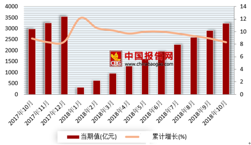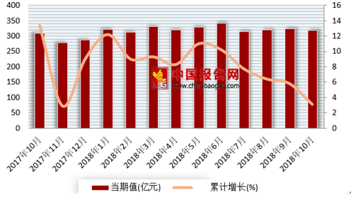 根据中国统计局数据显示,2018年1-10月我国固定通信业务收入3236.1亿元,累计同比增长8.3%,比1-9月增速下降了0.7个百分点。10月我国固定通信业务收入318.5亿元,比去年同期增长3.1%,较9月增速下降了2.7个百分点。