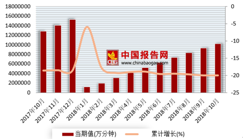 2018年1-10月我国固定本地电话通话时长情况