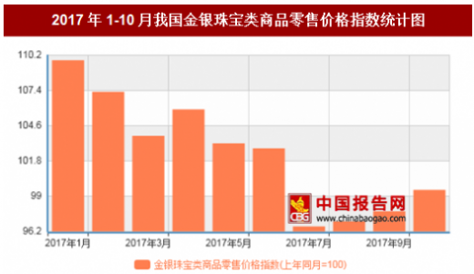 2017年1-10月我国金银珠宝类商品零售价格指数统计表