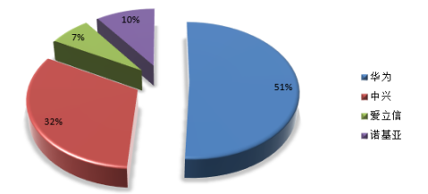国内5G产业链的核心企业毫无疑问是华为。无论是在通信设备、基站,还是手机等终端市场,都有华为的身影。其中,通信设备是华为非常重要的领域,也是华为的基本盘和发家之地。当前国内市场上,华为占据着通信设备一半左右的市场份额,第二则是中兴,市场份额大约为1/3。