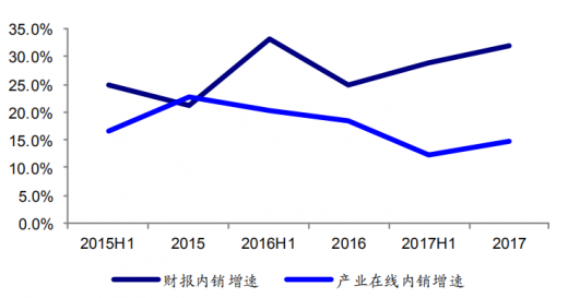 2017年我国小天鹅财报内销收入增速与产业在线内销增速差距拉(图)