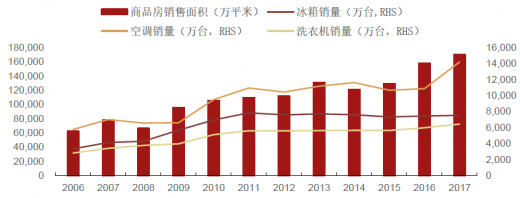 2006-2017年我国商品房销售面积及家电销量对比【图】