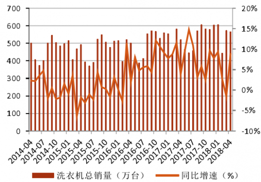 2014-2018年4月我国洗衣机总销量及同比【图】