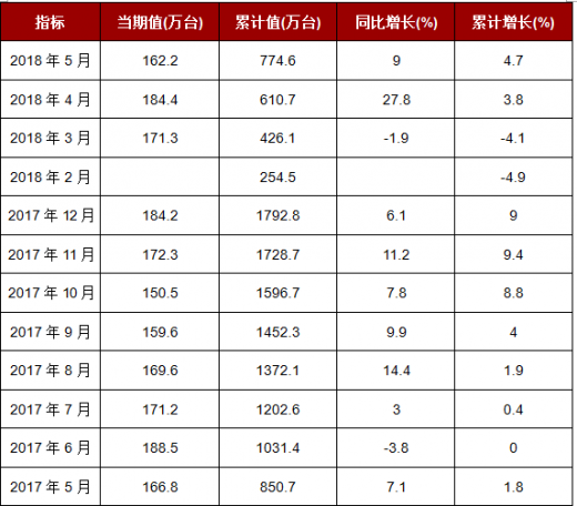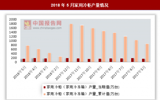 根据数据显示,2018年5月钢家用冷柜产量162.2万台,同比增长9%;2017年5月钢家用冷柜产量166.8万台,同比增长7.1%;2018年4月钢家用冷柜产量184.4万台,环比增长7.6%;2018年1-5月钢家用冷柜产量累计774.6万台,累计增长4.7%。