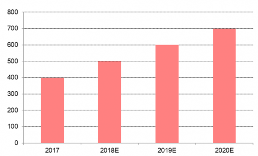 2017-2020年我国次高端白酒市场空间预测(亿元)