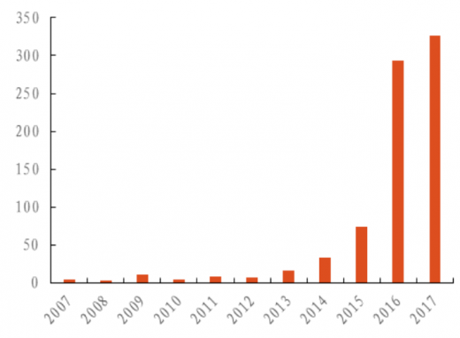 我国近几年精酿啤酒厂数量大幅攀升,2014 年国内仅 33 家精酿啤酒厂,而到 2017 年,我国精酿啤酒厂数量达到 326 家,显示人们对品质啤酒的强大需求。