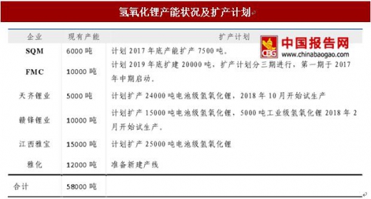 2016 年氢氧化锂的全球产能约为 5 万吨,其中国内产能约 2.5 万吨。氢氧化锂扩产面临几大问题:1.氢氧化锂的生产难度高于碳酸锂,具有一定的技术壁垒。2.盐湖提取的碳酸锂由于所含杂质种类较多,转化成氢氧化锂的难度较大(锂辉矿提取的碳酸锂转制氢氧化锂难度较小),转制成本约为 2-3 万元/吨。3.由于动力锂电池企业对于材料供应商的认证周期较长,通常在 2 年左右,电池级氢氧化钠的实际扩产周期很长。
