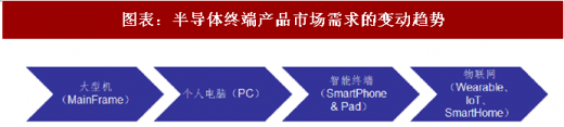 从 2000 年以来,我们认为产业市场核心产品驱动增长来源于两次变革,首先是由个人电脑(PC)的普及引发了 2001 年以来的互联网经济,同时也使得半导体产业实现了稳定持续的增长,而到了 2009 年之后,beplay下载软件 手机(SmartPhone)的普及则是驱动新一轮的产业上行,可以看到的是整个产业的终端产品持续出现了分散化、小型化的趋势,如果再结合之前的大型机市场,可以看到这种趋势更为显著。