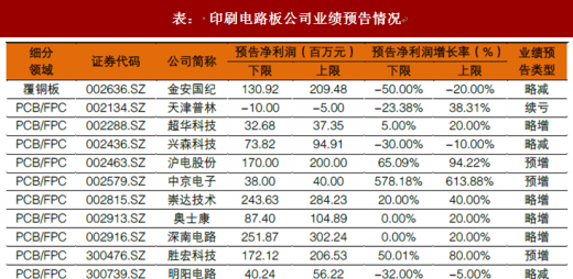 在已发布预告的 11 家 PCB 产业链公司中,有 7 家实现业绩增长。2017 年中国内资 PCB 营收前五的企业均保持20%以上的增速。国内PCB龙头深南电路2018年半年报净利预计为2.52-3.02亿元,增速为 0%-20%,胜宏科技受益于新产能逐步释放,净利润预告增速达 50%-80%。过去两年新上市的 PCB 公司有深南电路、奥士康、广东骏亚、传艺科技、世运电路、景旺电子、华正新材,目前 A 股共有 20 家 PCB 产业链上市公司,上市后国内 PCB 企业融资渠道拓宽,有利企业扩产提高整体经营能力。