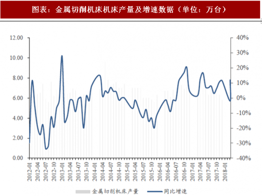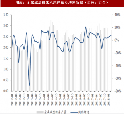 下游需求指标向好:最新机床产量累计同比数据创2017年6月以来最高值:2018年3月 ,金属成型机床产量累计同增7.7%;18年4月份,金属切削机床产量累计同增12%,与 3月份的-2%相比出现明显回升。