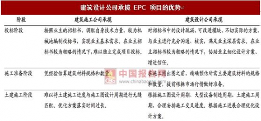 在 EPC 热潮席卷建筑市场之际,行业内各类公司均争相承揽 EPC 项目。建筑 设计公司作为 EPC 项目的承揽者,能够在项目各个环节上发挥特有的技术优势。