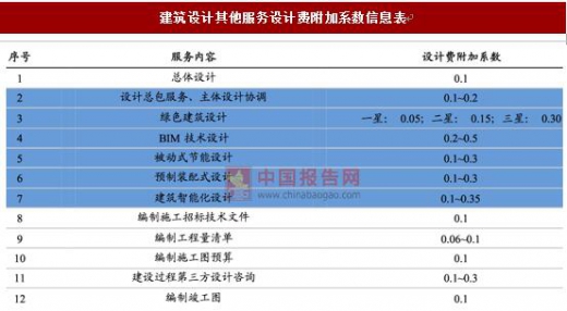 中国勘察设计协会 2016 年底发布的《关于建筑设计服务成本要素信息统计分 析情况的通报》对当前建筑设计市场附加服务进行了市场摸底。