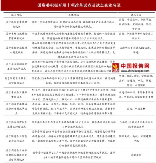 国改试点为后续“施工”的重要基石。2014 年 7 月,国资委启动四项改革试点,六家央企入选首批改革试点;2016 年 7 月,国资委发布第二批五项试点名单,包括 20 家央企。从全国的范围来看,2016 年以来各省市共出台 760 多项具体方案和具体举措,开展了 200 多项试点。从年初在集团层面推进十项改革试点,到逐渐深入到二级、三级至基层,层层落地推进改革,为后续国企改革进一步纵深推进打下了坚实基础。