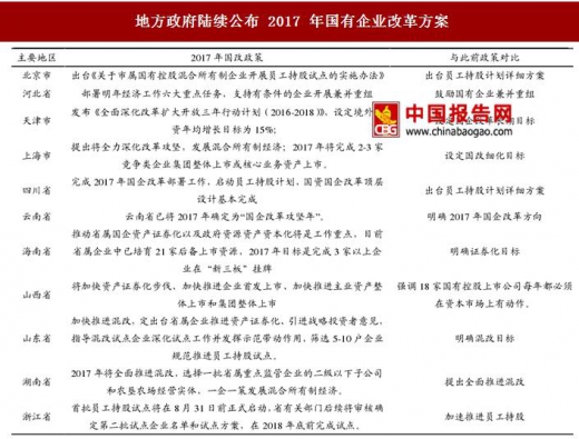 此地方国改正积极推进,尤以东部沿海省份为甚。1)上海、广东等多省市纷纷制定 2017 年相关改革细化方案和试点计划,包括加速重组调结构、清退落后产能等,不少省份已明确重组行业和时间表;2)大多数省份均提出提高省属集团资产证券化率、提高混合所有制企业比例的目标(湖南、重庆要求在 2020 年达到 80%;其他省份的目标大多在 50%左右),全国近 20 个省份已经出台地方发展混合所有制经济的指导文件;3)全国目前推动实施员工持股计划的省市已有 20 余个。2016 年国改政策有延续性,2017 年重点是混改以及兼并重组、员工持股和引入战投。
