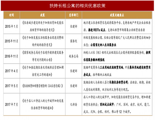 目前政府多个部门出台多项优惠政策扶持长租公寓的发展。