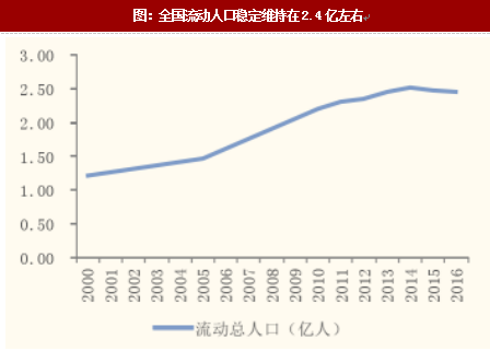 租房需求稳定:预计每年租房人口达1.79亿人:我国租房需求主要源自于流动人口租房需求与高校毕业生租房需求,1)近年来我国流动人口稳定在2.4亿人,参考2013年末全国流动人口居住方式来看,居住在政府提供的廉租房和公租房的比例为0.3%,租住私房比例为67.3%,我们认为现阶段租房仍是流动人口居住需求的主要手段,我们按照67.6%的流动人口租房比例预计每年租房人群1.6亿人;2)考虑常住户籍人口中存在部分租客,主要源自于非本地生源且落地当地的高校毕业生,以全国平均购房年龄27岁计算,近5年普通高校毕业生数合计0.33亿人,假设50%为非本地生源且落户租房,租房人口达0.17亿人。