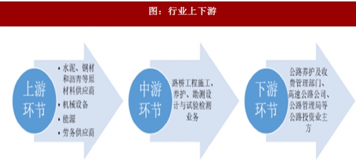 对于勘察设计行业,其属于路桥施工业务价值链的前端,生产经营主要采购办公用品、计算机等设备材料,市场供应充裕,且质量、价格透明度高;该行业下游行业为路桥施工类工程建设企业。试验检测业的上游行业为多种仪器设备供应商和检测试剂供应商,相对较为分散,下游客户主要为建筑材料生产企业和路桥施工类企业等工程建设企业。