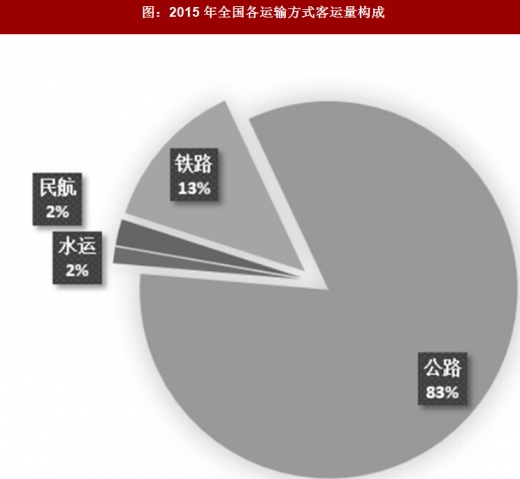 2015 年,我国客运量达到1,943,271 万人次,其中以公路方式运输占比83.32%;货运量达到4,175,886 万吨,其中以公路方式运输占比75.43%。同时,由于公路是联系各种运输方式如水运、航空、铁路等的重要手段,这些运输方式的正常运转也在很大程度上以公路运输来衔接。