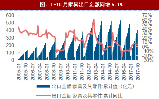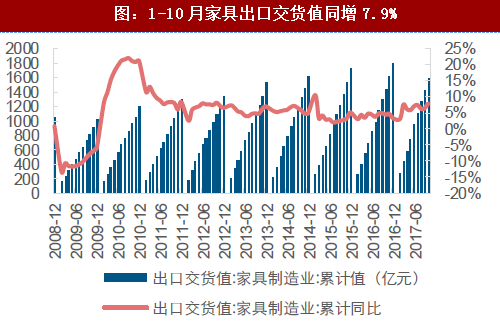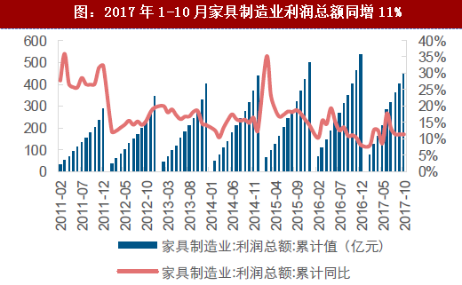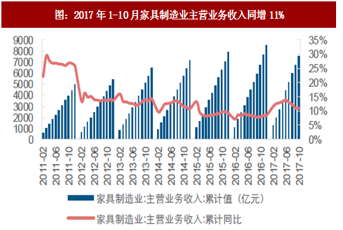 图:2017年1-10月家具制造业主营业务收入同增11%