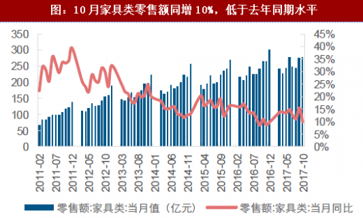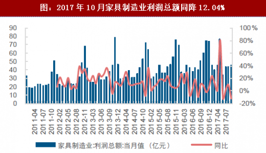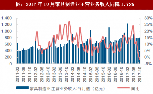 图:2017年10月家具制造业主营业务收入同降1.72%