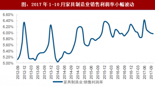 图:2017年1-10月家具制造业销售利润率小幅波动