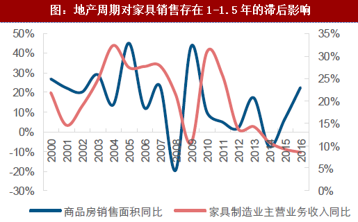 图:地产周期对家具销售存在1-1.5年的滞后影响