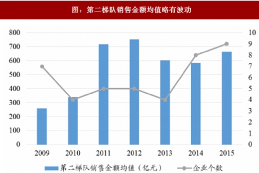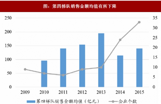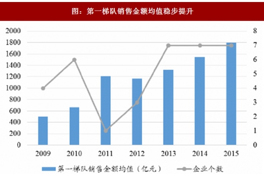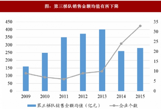 在龙头房地产企业销售规模逐步提升的过程中,各梯队的进入门槛也随之增加,强者恒强的趋势愈发明显。根据各个梯队的进入门槛可以看到,第一梯队的销售金额均值保持稳步提升,且企业个数自2013年起稳定在7家;第二、三、四梯队进入门槛的销售金额均值略有调整,且与第一梯队的差距正在逐渐加大,企业个数仍在提升。限购及限售政策加码使得部分梯队的房地产企业总体销售规模有效下降,但龙头房企的业绩快速增长将带动集中度的提升进一步推进。